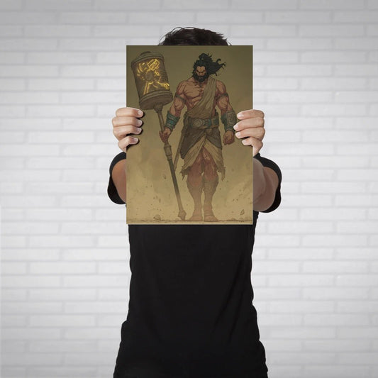 Regular price From Rs. 599.00Regular priceUnit price / perSale price From Rs. 599.00Channel the unmatched strength of Bhima, the mighty warrior of Mahabharata. This premium metal poster is crafted with high-gloss printing on durable metal, making it a masterpiece that reflects his raw power and fearlessness. Whether for your study, gym, or living space, this scratch-resistant and fade-proof artwork will inspire strength every day. -